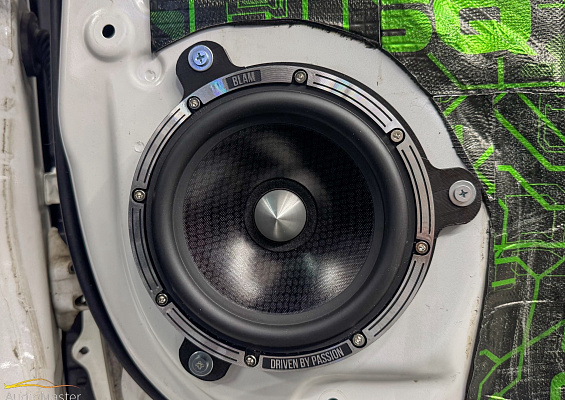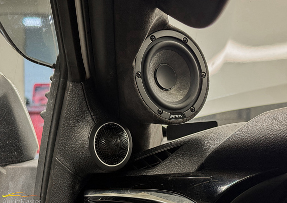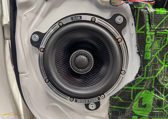 В качестве фронтальной акустики выступили мидбасы Blam LW165P , установленные при помощи проставочных колец, которые мы изготовили на 3D принтере. Для СЧ и ВЧ динамиков мы изготавливали подиумы. СЧ акустика Eton GRAPHIT 80 установлена в стойки, а высокочастотная акустика Morel MT 120N играет в уголках зеркал. На тыл установлены коаксиалы Blam L165C.